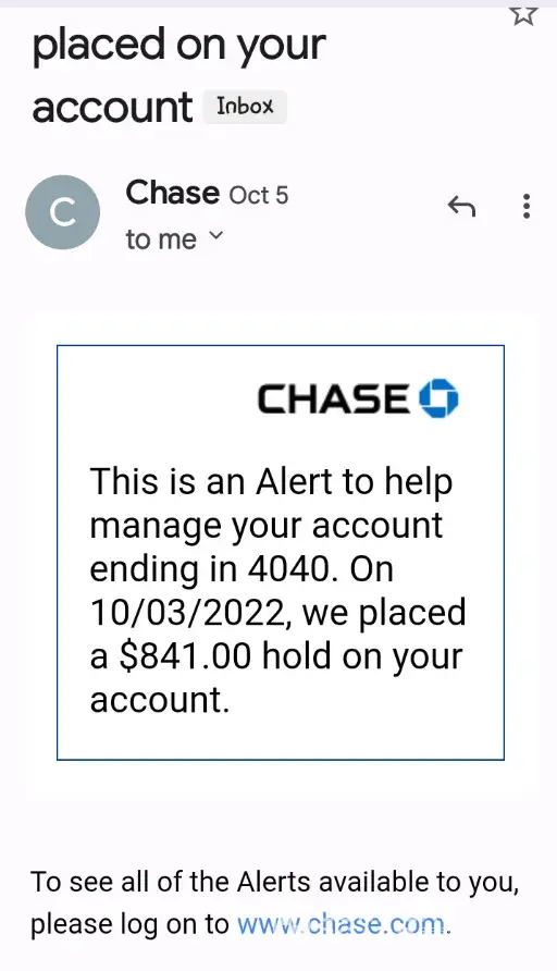 JPMorgan Chase Deposit hold