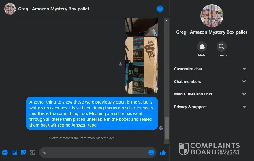 Also revealed is that I purchased 2 full pallets of Amazon Mystery Boxes from this person, when she arrived there was a lot of small boxes. Added up I figured may be 40 boxes as described on ad, no where near. Only 7 Mystery boxes, so it was a total scam and chase does nothing a out it. Pulling my money out is a wise choice before they allow the rest to get stolen.