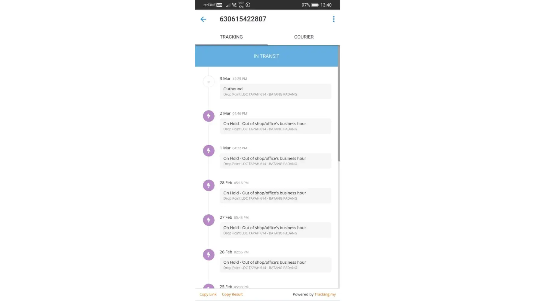 28 Feb 2022 - The parcel status still haven't update, so we had called J&T Hotline service but Sarawak cut off our line. After that, we had tried to use different office number but we also cannot reach them already