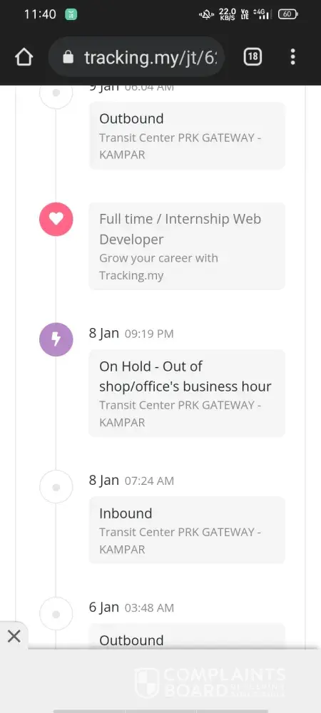 My parcel had been ship by the seller from Kuala Lumpur on 5 of January 2022. The parcel took almost a week or more to reach Perak. I had check that my parcel had been stuck in KUL_Gateway for 3 days which is on 6th to 8th of January. Then it had been transit to PRK_Getway and now it had been stuck there for 2 days. There written that my parcel is on hold when the service was available for the whole day. I would like to ask for briefly explanation why does J&T Express took so long to send a parcel which is only 2 hours journey and not 20 hours journey.