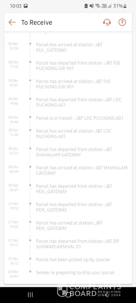 Late delivery, missing items, item hold for 1 week for no reason and no notice. You can google cdc senawang 312 and you read the google review, not a single good review posted there. Close the jnt.