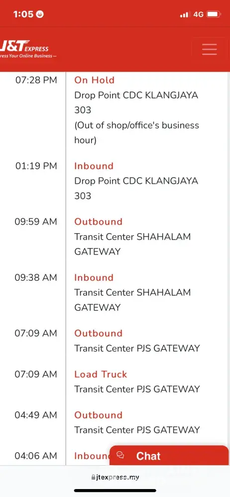 I have three parcels outbound from j&t CDC Ampang. On hold for two days. Fail attempts due to bad weather but actually not at all. Why no respond when i make call and want to chat with customer service. Call never answer. Almost 5 days already inbound and outbound. Very seriously bad services from j&t.