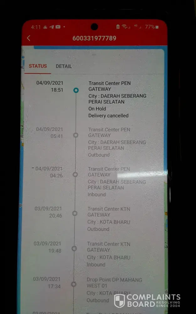 The tracking number is [protected] and the postcode is 36800. It supposed to be sent to Perak Tengah district but it's being brought to Larut Matang district, PRK 900. J&T Express, please send to the right address and postcode because the parcel contains food. Which I'm afraid it might going to turn bad if it's not arrived in the nearest time. Plus, I've read reviews that parcels tend to stuck at the hub PRK 900 for a really long time. And that's not good since my parcel contains food.