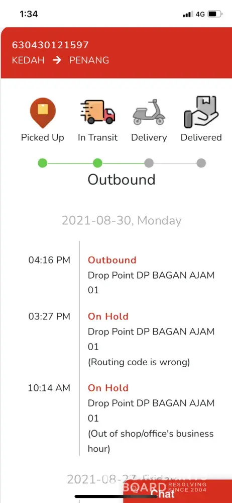 4 of my parcel being departed for too long at Jnt Perak Gateaway