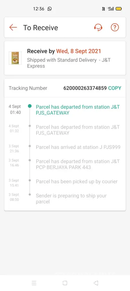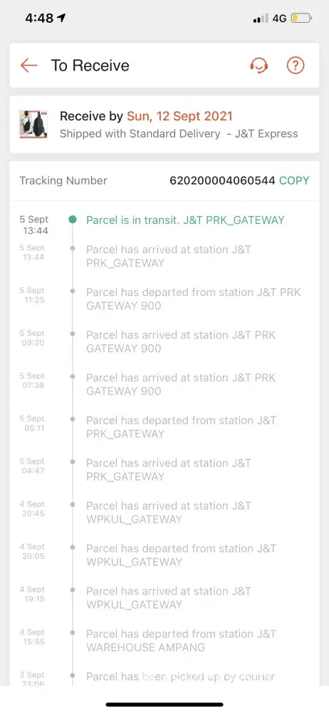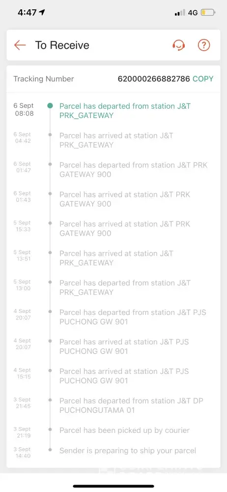 4 tracking number for my parcel that being too long at Jnt PERAK GATEWAY