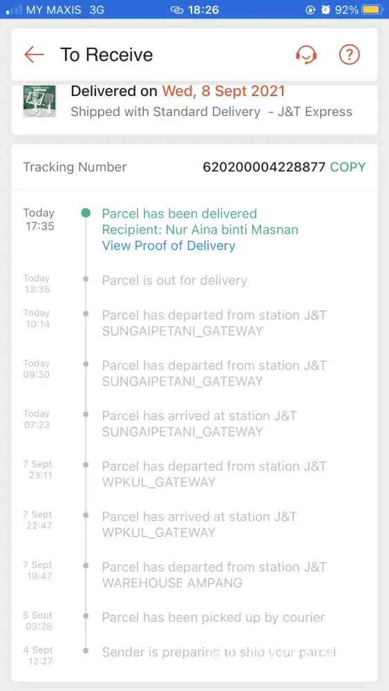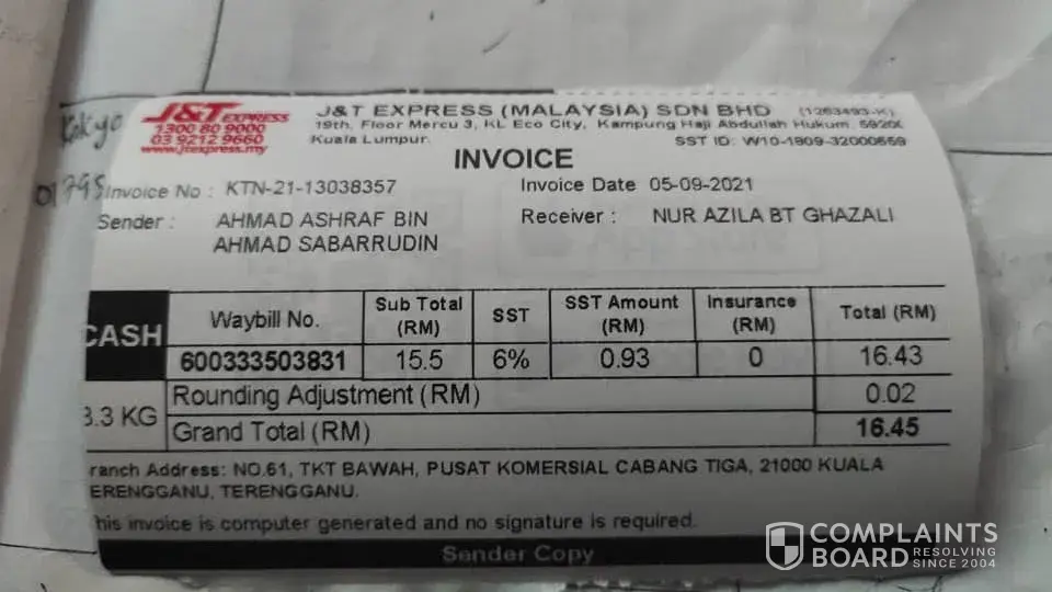 Untuk makluman saya guna alamat tempat kerja (MARDI) tetapi gambar bukti barang saya telah dihantar menunjukkan lokasi rumah orang bukannya tempat kerja saya. Gambar yg di ambil juga tidak menunjukkan alamat & nama saya. Saya tidak dapat barang saya & juga tidak dapat apa-apa makluman barang akan dihantar. Saya cuma dapat notification menyatakan barang saya telah dihantar. Mohon pihak J&T siasat staf yang terlibat dalam proses penghantaran tersebut.