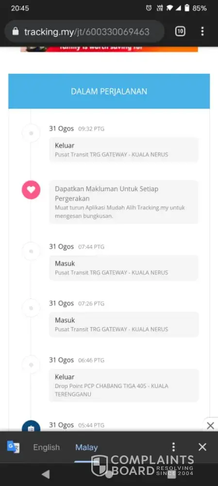I'm Jiva here launching a complaint on J&T service. I didn't receive the parcel till today 7 Sept 2021 where it been out for delivery on 13 Aug 2021. I have connected the customer service man times and launch a complaint but there is no response from them. The only answer which I get back is "the parcel is already in seri kembanagan hub, will try to deliver to you" and I also can't track my parcel on the website.