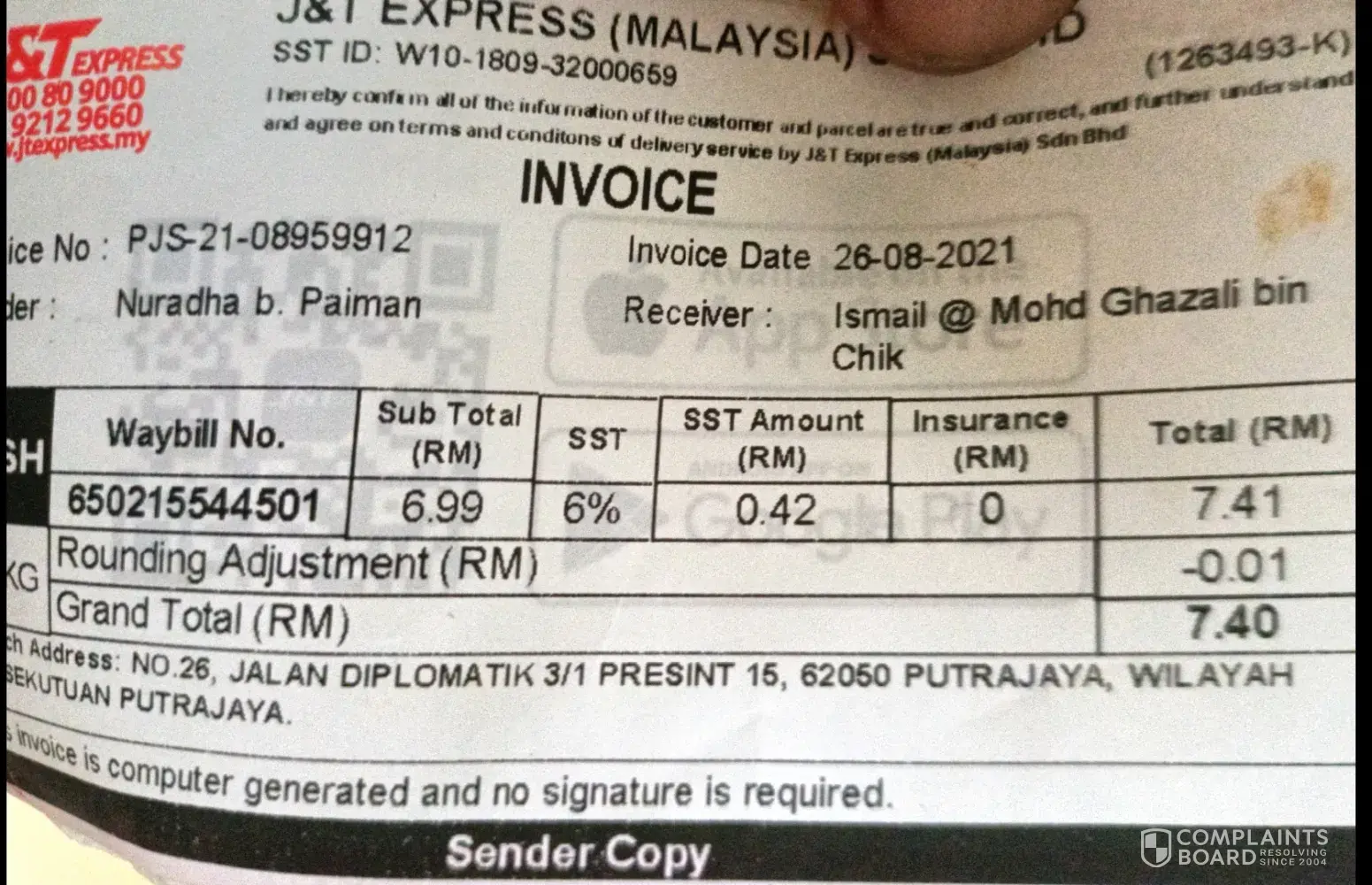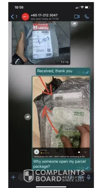 The parcel is worth RM800, and J&T Negeri Sembilan hasn't been helping in moving the case forward, so we hope that MCMC will help us with this case. Thank you.