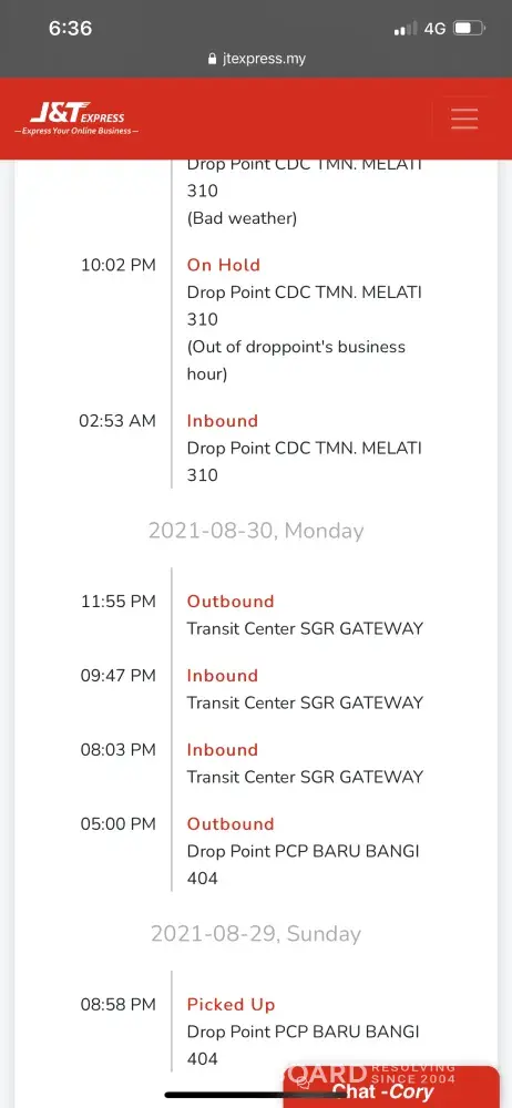 We have been going back and forth with the staff of J&T for feedback, but we are always awaiting feedback from J&T Negeri Sembilan for the parcel, but they never helped us to look for the parcel.
