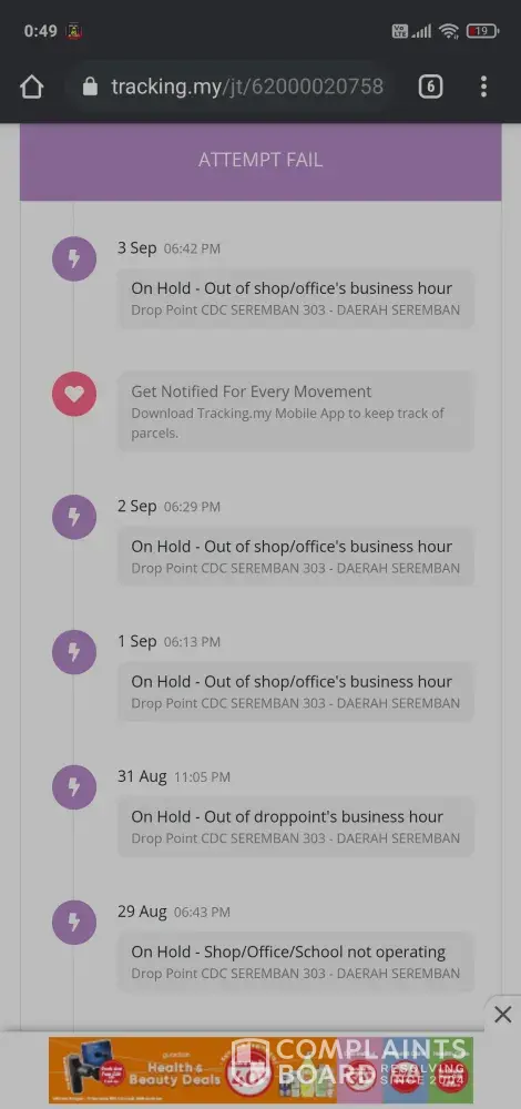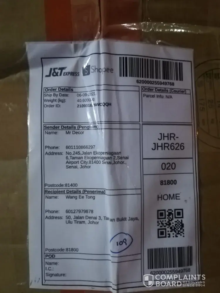 My parcel was on hold in J&T JURU 602 since 29/8/21 till now