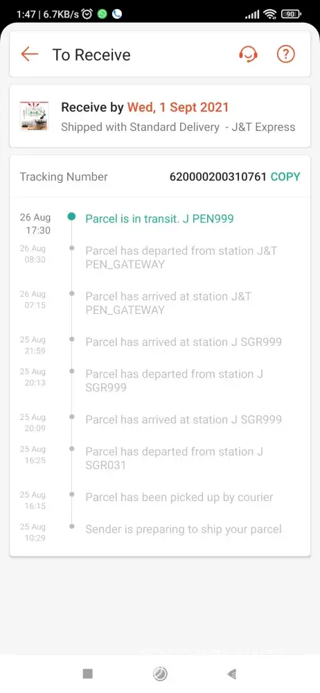 I've check status of my Parcel. Reach kuching, Sarawak since 27/08/2021 but up until today still not delivered to me.