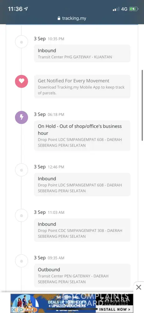 The earliest parcel reach Penang Hub on 27 September and till now no attempt of delivery. (static no updates at all