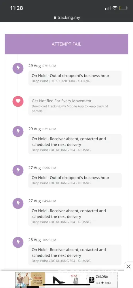 My parcel has been "on hold" and "in transit" since 26/8/2021. AND NOW IS ALD 30/8, it is supposed to arrive in 2 - 3 days (28/8)