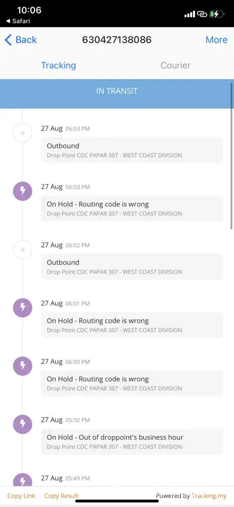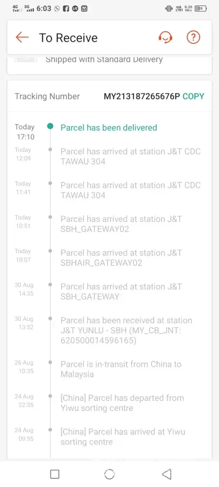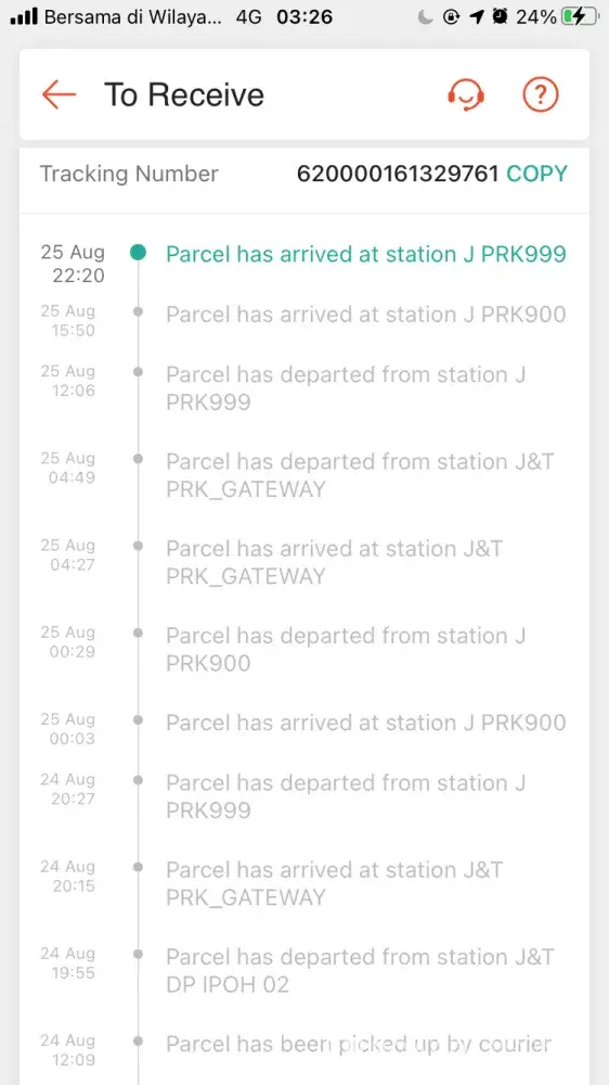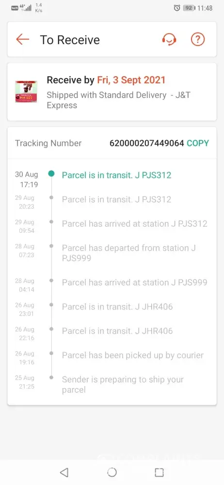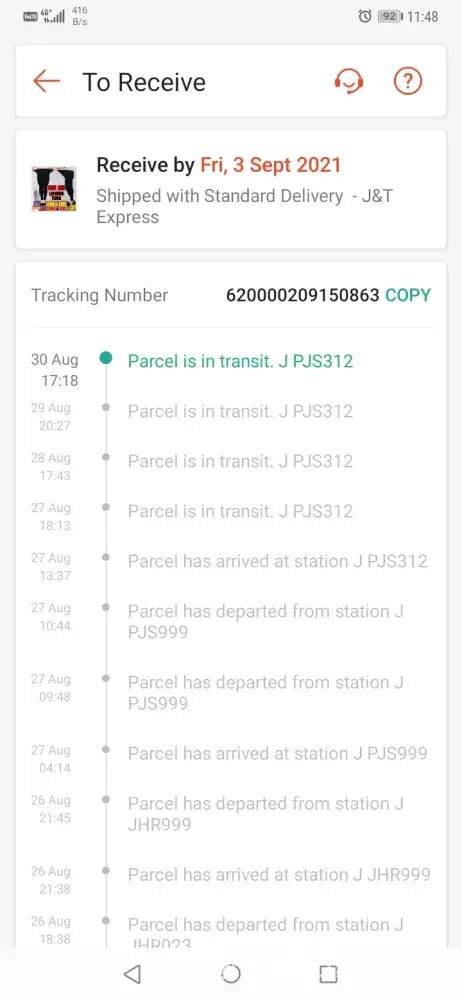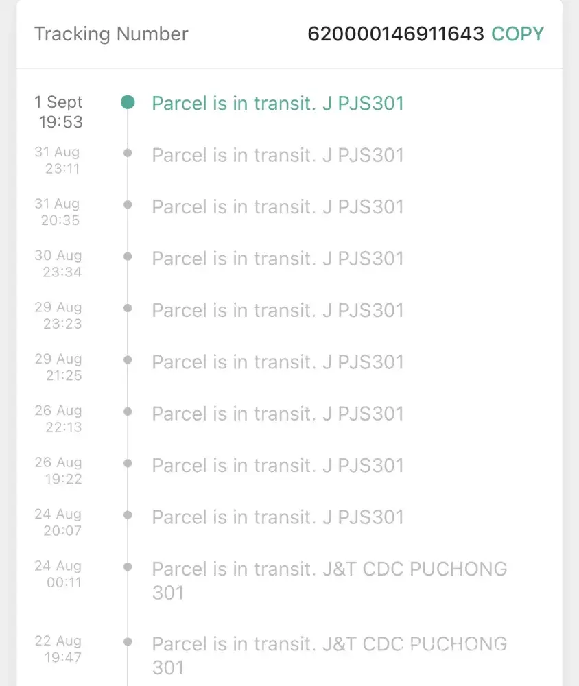 Above is my tracking ID for an order made via Shopee. The order supposed to be delivered on the 23/08/2021, however till today 02/09/2021 im yet to receive my parcel. The order status is stuck In CDC puchong, its being checked-in again and again after hours every 1-2 days gap.I have contacted J&T customer service 6 times to check if anything's wrong and i was informed that they will inform the CDC puchong station, will send email and will inform the person in-charge. But no update on the delivery, again when i call, they informed the same thing but also no any update on the previous reports made which was informed as the agents thru the call. You may refer to the attachment that when was the parcel arrived at the station and its just keep on checking in. Truly understand the current situation and parcel will be delayed for delivery. But not this many days, especially after the call to J&T cust service on 24th, i was informed it will only be delayed 1-2 days. Im afraid something is wrong with the parcel/missing, hence its been delayed, keep on checking-in same station and no proper update. The latest when i call J&T cust service, they just simply asked me to cancel the order instead of delivering it on time. First of all the order was made to shopee, why would i need to cancel the order with shopee if courier failed to deliver? Kindly check and update as soonest, looking forward for the delivery by today if the parcel is fine.