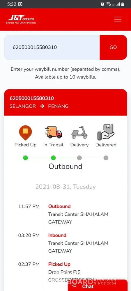 These 2 parcels almost 1 week plus at Station J PRK 900 ...not moving almost 1 week plus...When i called customer care J& T never answer the call...This is the worst courier service in Malaysia...i never experienced lousy courier like this before...at least you explain the reason. if possible let customer pick up the parcel by our own...I lost a lot of cash due to this late delivery...because the parcel contain the main machine for our work...