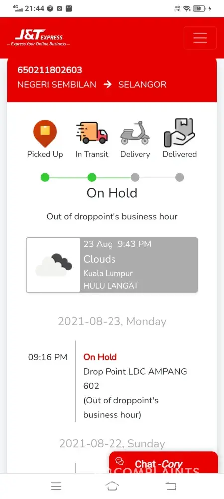 I demand for push delivery of my parcrl. Its has been stuck since 21 August 2021 at J&T SBHAIR_Getaway.