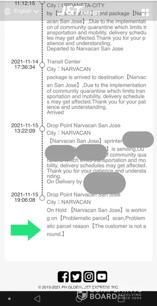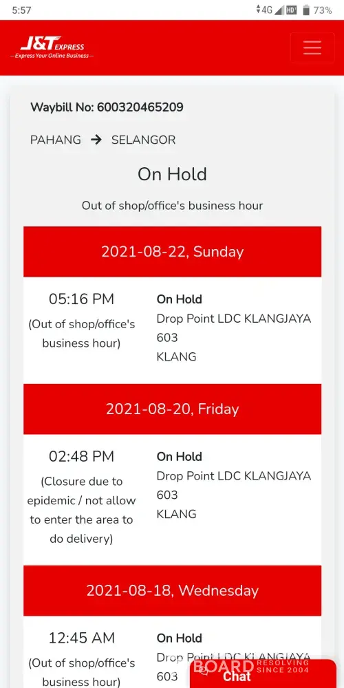 Hi j&t (601 lunas) .. Still waiting for my parcel (on hold 4 days), already hit 4 days today. Try to call the center but never pickup. Can't get any update at all . Maybe all staff off duty cause by covid19.