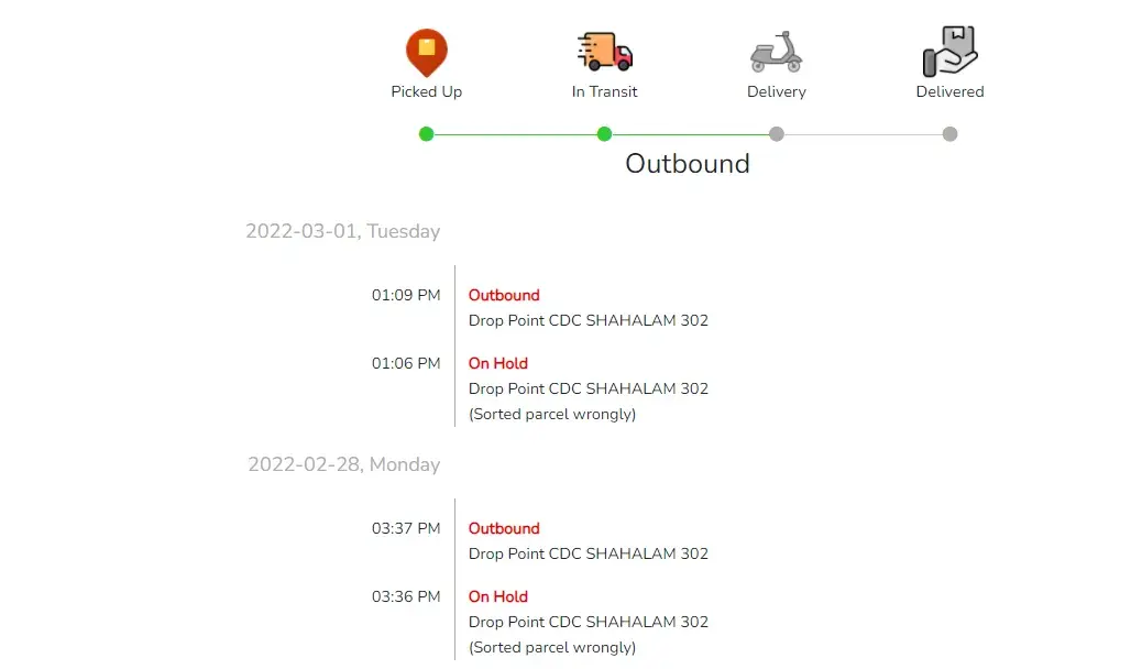 Parcel was post from Penang to Ipoh on the 9th Aug. Today is 22nd Aug. It's been 13 days still no delivery. Please see the attached tracking. Apparently the practice of first in first out does not exist as parcel post much later already delivered within 3 days. Very dissapointed with the level of professionalism. Please get my parcel deliver.