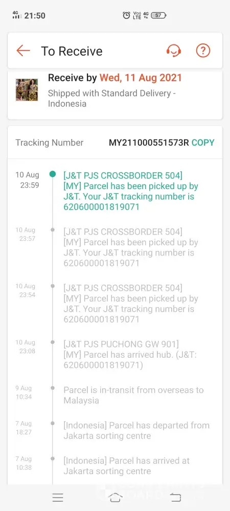 Tolong uodate no tracking [protected]. Tiada pergerakan lansg dr 16/8/21 smpi la skg