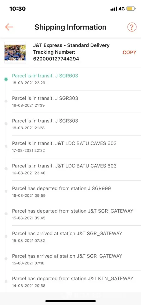 jnt had pickup my parcel on 12thAugust 2021 and the last update was it was outbound from jnt menglembu 01 on the same day.but until today 18th August no more update and my parcel didnt arrive yet. please settle this ASAP.