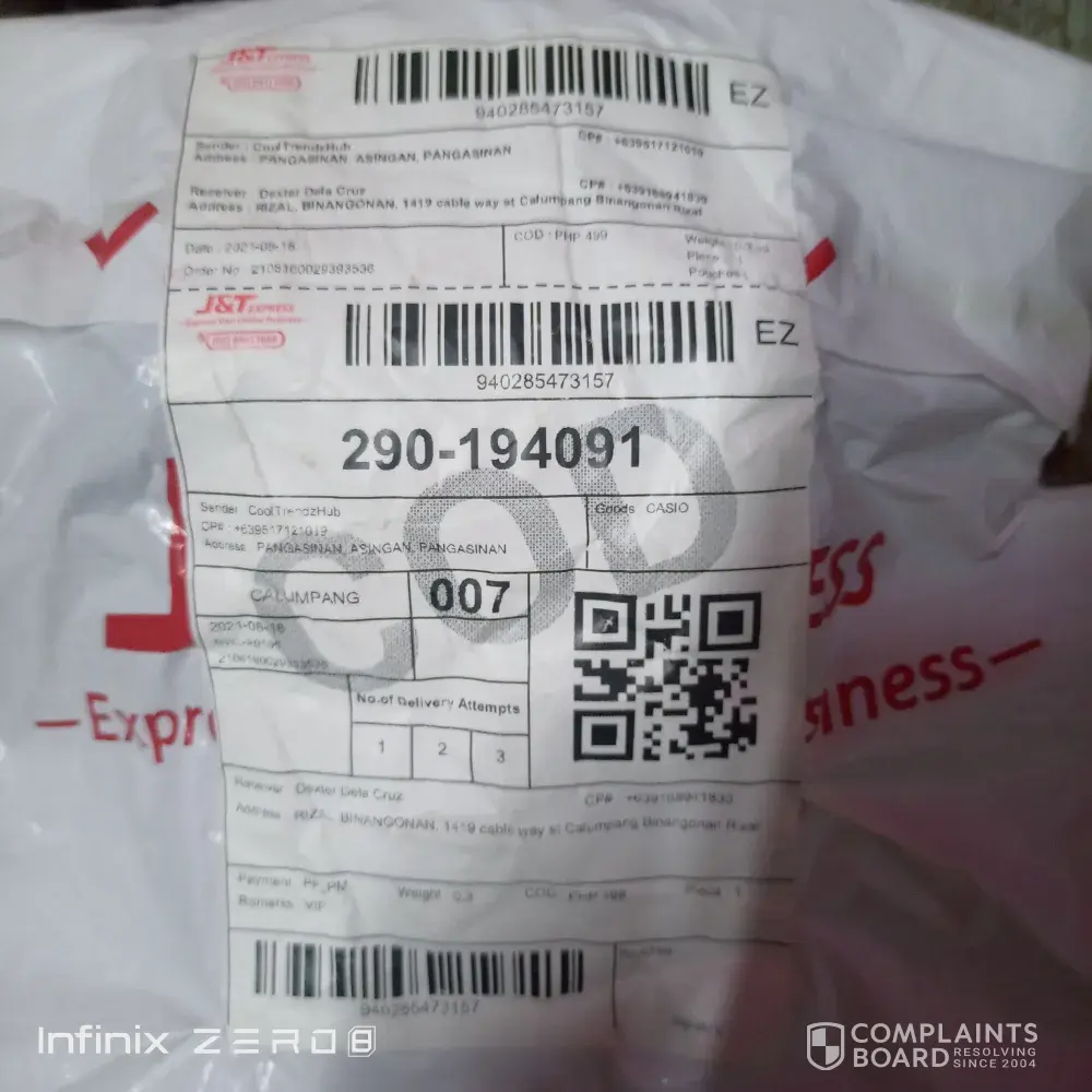 I received my placed order in shopee but there is another package that arrived together with my order in shopee, but the other one I dont know about it I didnt order a watch, it is raining last night 8/18/21 I thought the 2nd package was my another order which is 2 toys worth 400 but upon opening the other package was a watch, the seller contact number is unattended, I already file a complaint at j&t pantok branch do not release the payment to the seller unless he/she provide me a proof that I order to him/her.