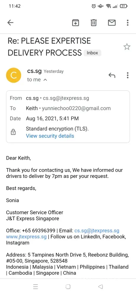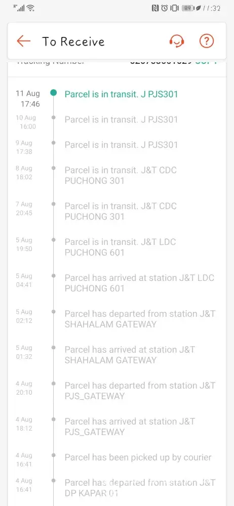 Jnt in malaysia are so slow.. I hope you will improve the service, we received the parcels so late, more than 2 weeks. And some of the parcels are stuck at the same place for more than 5days. Please improve your service and do your job nicely. Ive been using jnt for along time ago, and the service is still same untill now, too slow.