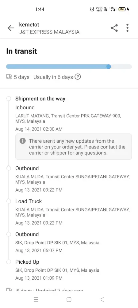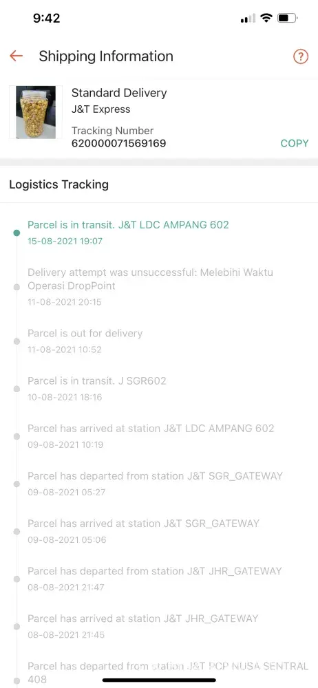 The parcel hold on ampang 602 almost one week already still didn't move. What a lousy service for this jnt at ampang 602.