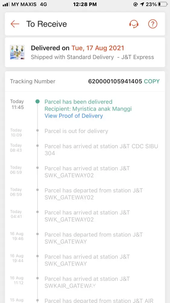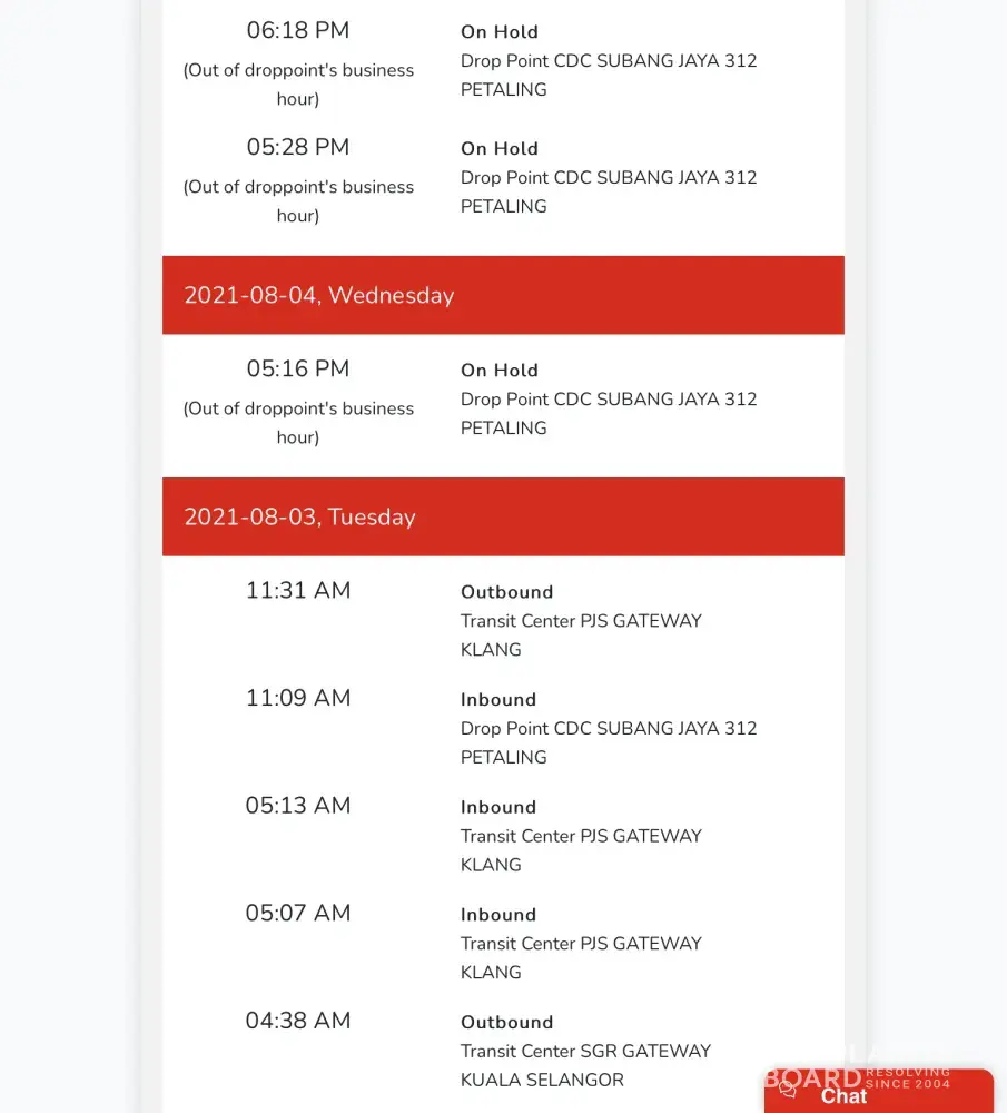 Date of item arrived at CDC Subang Jaya 312 Petaling : 4th August 2021 (item has arrived at cdc since 2 weeks ago)