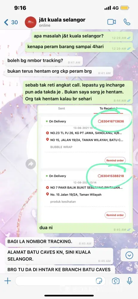No traking [protected] dan [protected]. Tolong pastikan hantar segera barang saya. Tq