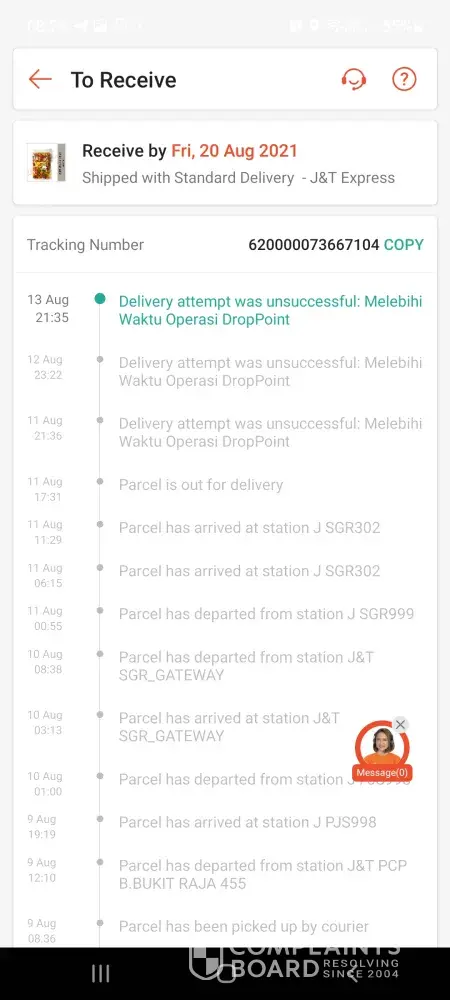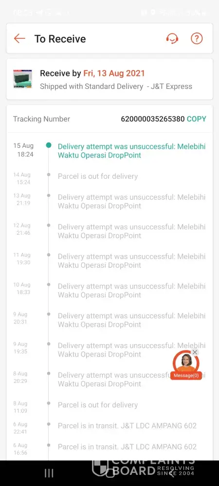 Hi, I'm expecting 2 parcels from J&T which supposed to be delivered last week. My parcels are yet to arrive and the tracking system in Shopee keep showing notification "Delivery attempt was unsuccessful : Melebihi waktu operasi DropPoint". Please send my parcels ASAP or refund me instead. Thanks.