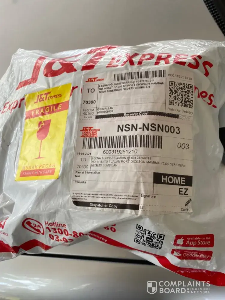 Complaint: Obvious trickery in the order from the beginning. J&T Express did not verify if item is the one ordered.