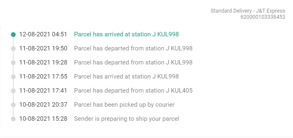 I am very disappointed with J&T Express now. My brother sent parcel number [protected] from Penang on 10/8/2021. However, until now 16/8/2021, the status of the package is still stuck at J&T SGR 601 Bandar Teknologi Kajang. This item is very important for me to receive immediately. It is hoped that J&T can improve the quality of service so that users remain confident to use your services.