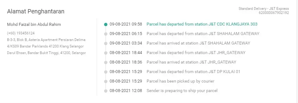 My parcel not receive yet.. Parcel id number is [protected]. Please update my parcel latest location. Jnt system tracking is not update the parcel location. Today is 14/08/2021 but when I check jnt online tracking system, it only shows last lication info on 11/08/2021. Please take action.. Tq