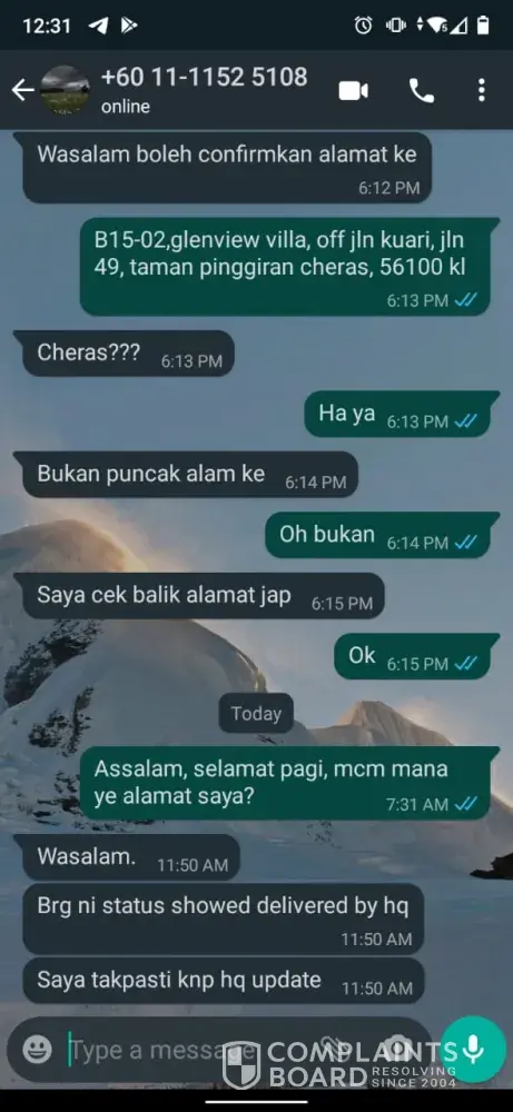 Rider tak whatsapp atau panggil saya untuk pastikan Nama masa hantar barang PADA saya. Rider Dari courier lain biasa nya Akan pastikan Nama penerima and bagitau nk dtg hantar. Dah lah main letak je barang (berkaca) dkt hujung tembok pastu tak bagitau saya nasib saya alert check app tulis delivered tapi barang tak de kat saya and saya tgok luar barang Tu duduk mcm tu. Itu nasib saya perasan kalau tak mana tau kucing ke atau haiwan lain tertepis or hujan masa tu apa jadi dekat parcel saya? Tak fikir ke? dalam era covid ni memang Akan Ada je orang dekat rumah sbab work from home jadi boleh je panggil. Saya dah lah tunggu barang Tu dekat 2 Hari Lepastu bila saya call HQ baru nak hantar barang saya? Kenapa eh kena simpan lama sangat barang saya? Bila dah complain baru nak hantar. Lepastu hari yang Sama parcel saya lagi satu pergi hantar salah alamat padahal terang-terang alamat saya tu lain. Pastu main pergi je tanpa pastikan penerima Tu betul ke tidak. Tolong lah saya bayar tau perkhidmatan bukan tak bayar jadi tolong lah buat kerja tu dengan ikhlas. Sekian terima kasih
