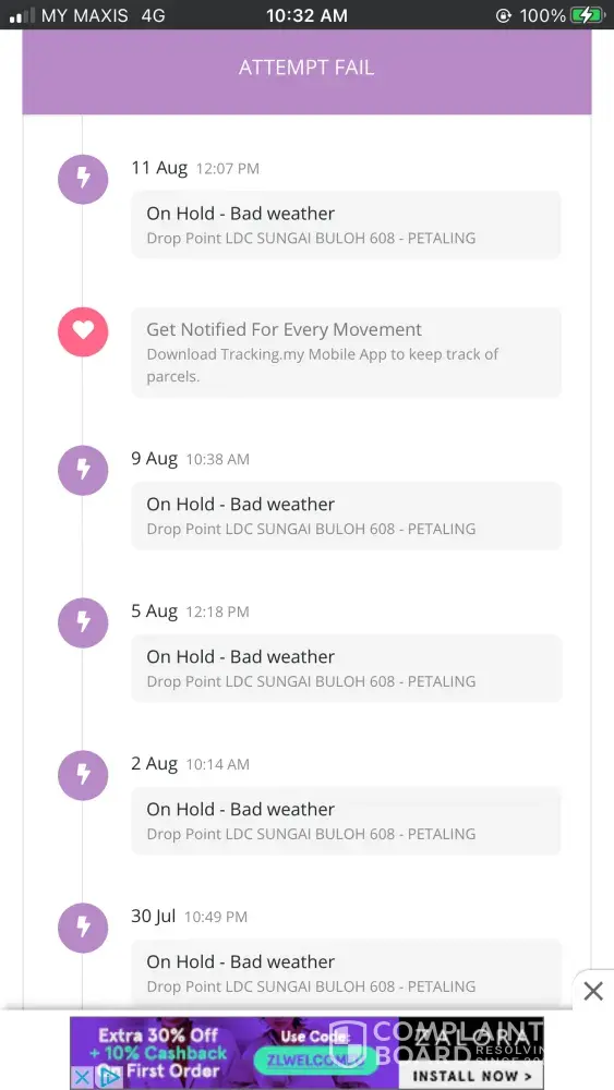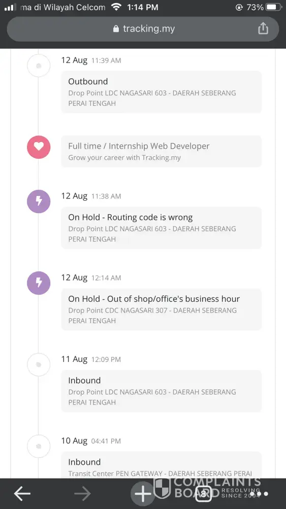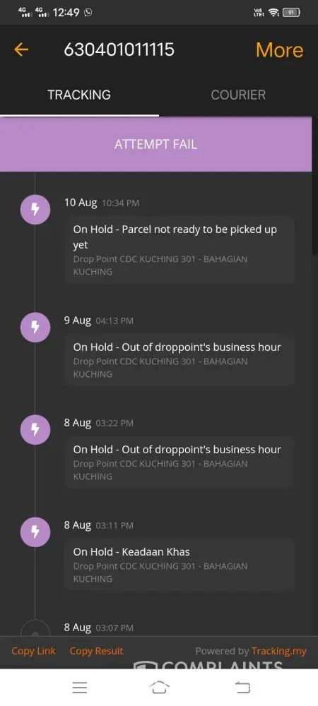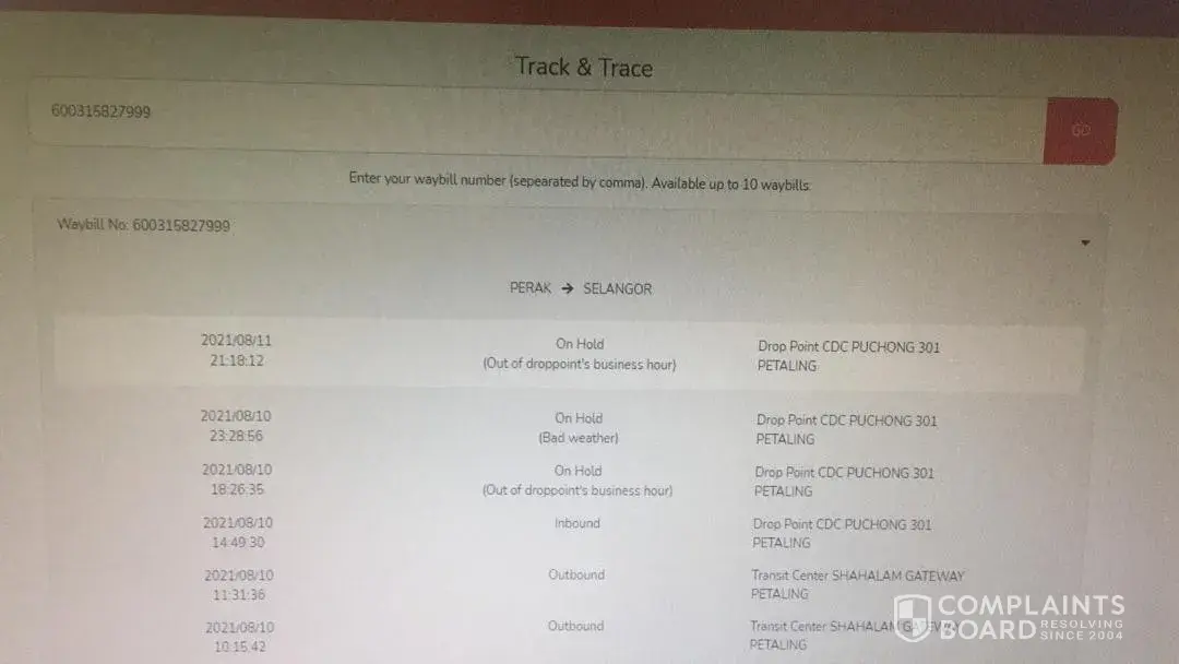 I would like to make a complaint of CDC PUCHONG 301 PETALING (Tracking Number: [protected]).