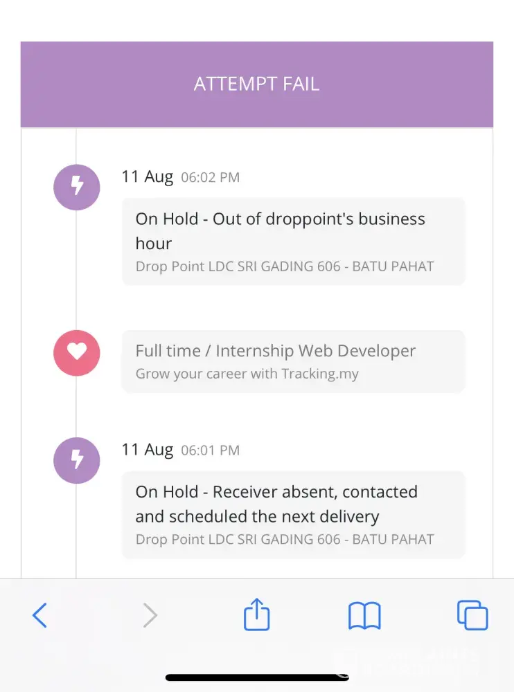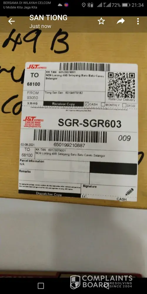 In addition, my complaint email to support@jtexpress.my was returned with the reason of "recipient over quota". J&T Malaysia, please improve your complaint/customer service system. Thanks.