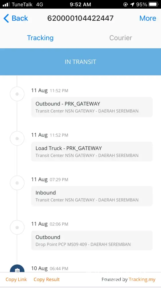 the parcel is from sarawak tu selangor from 2/8/2021.Tracking No. is [protected]. The tracking shows that it is at Transit Center SGR Gateway Kuala selangor since 6/8/2021.