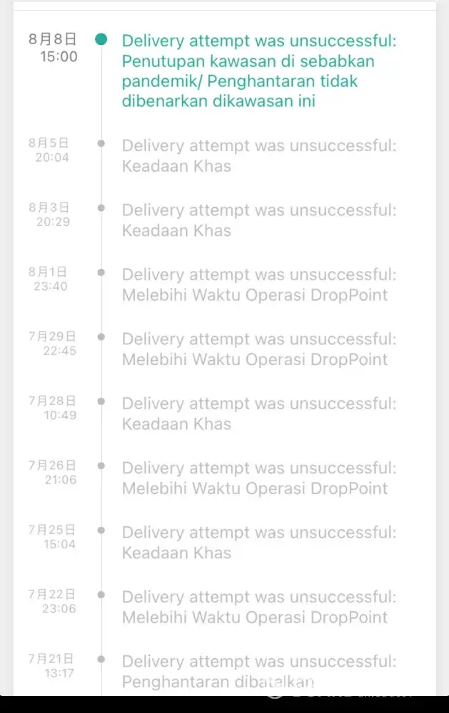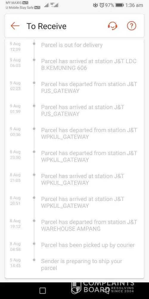 From 29.7.2021 to 5.8.2021keep updating Parcel Is In Transit.