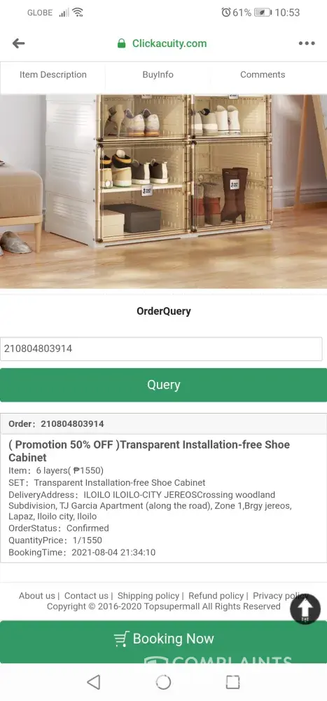 Wrong item delivered. Ordered 6 layer shoes cabinet but received 4 pieces shoe boxes
