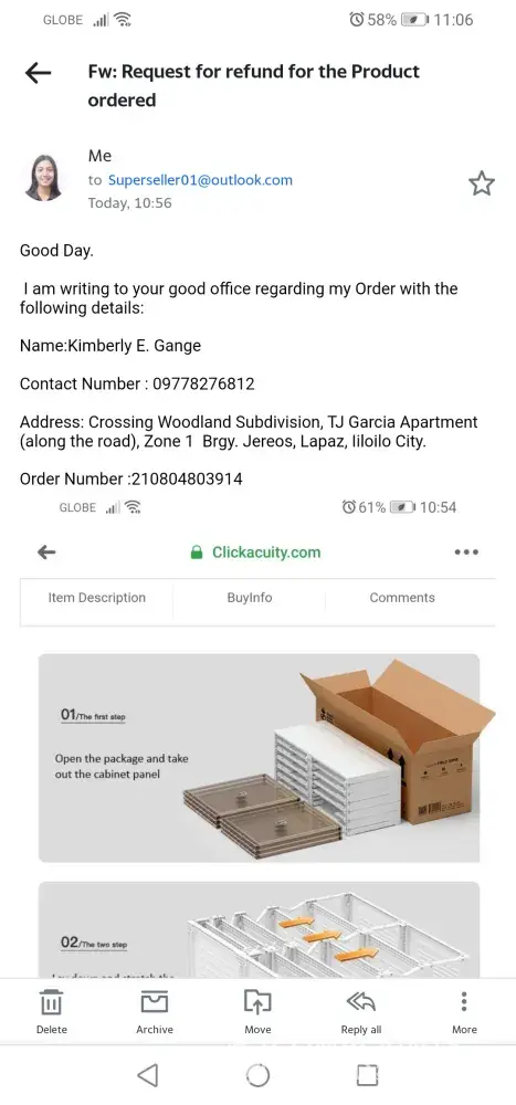 Kindly attend to my complaint as this will impact your company's reputation on the service rendered.