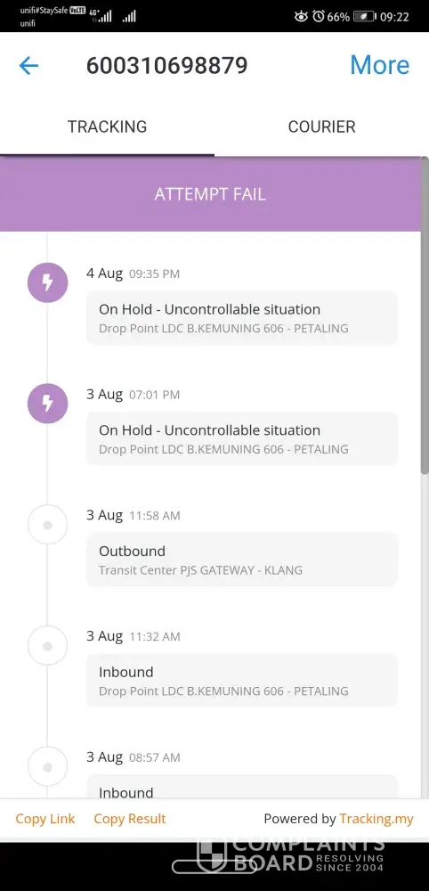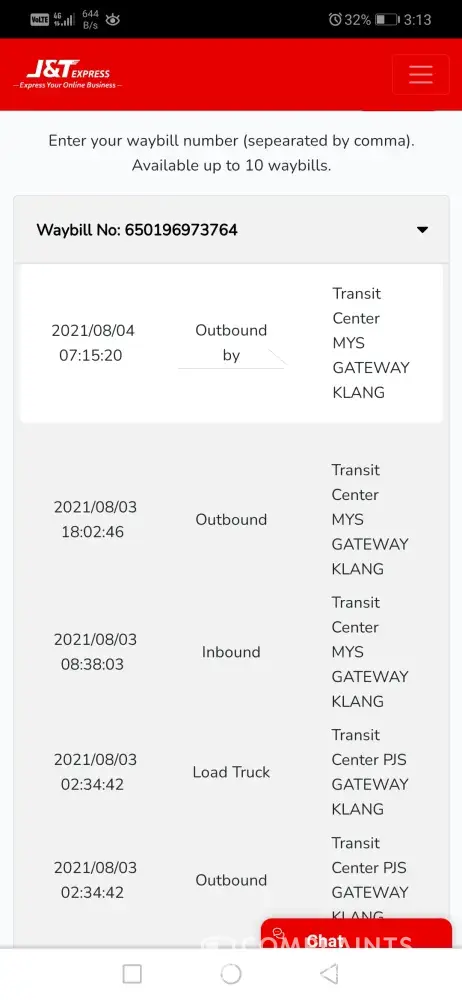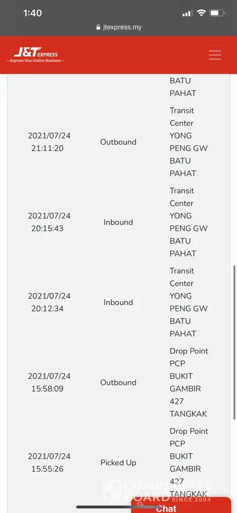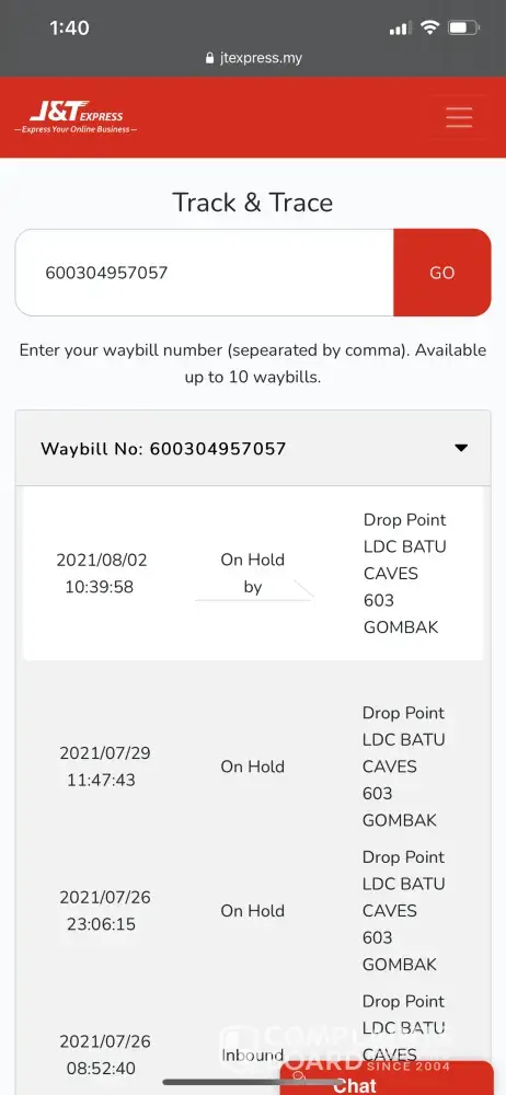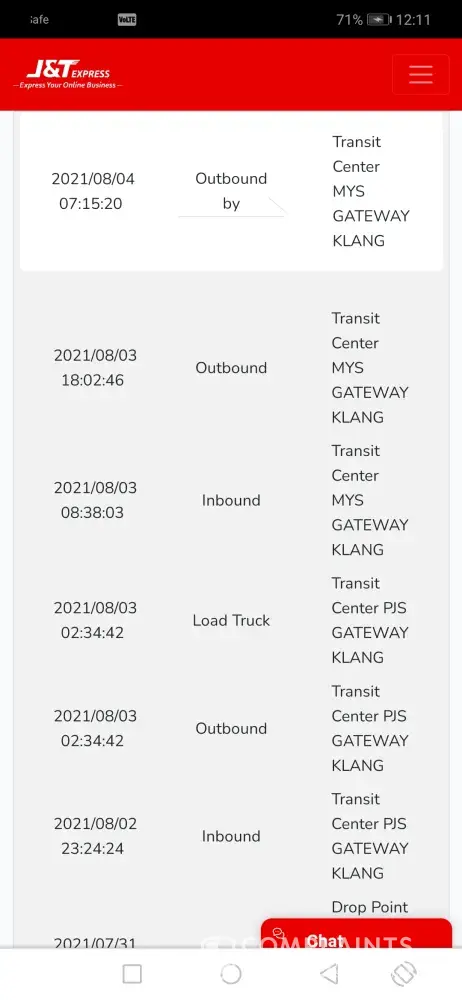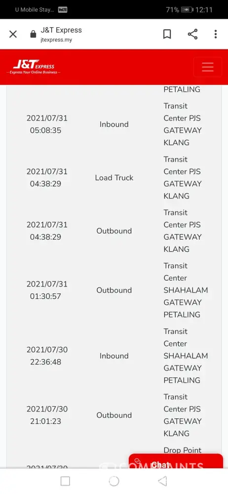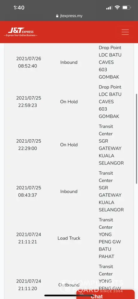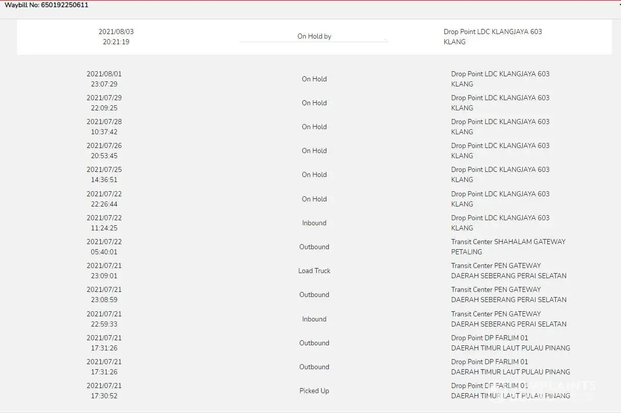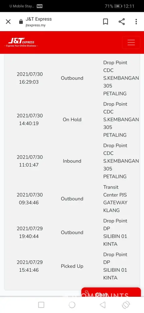 J&T Express Parcel still at ldc batu caves 603 in 11 days without any update