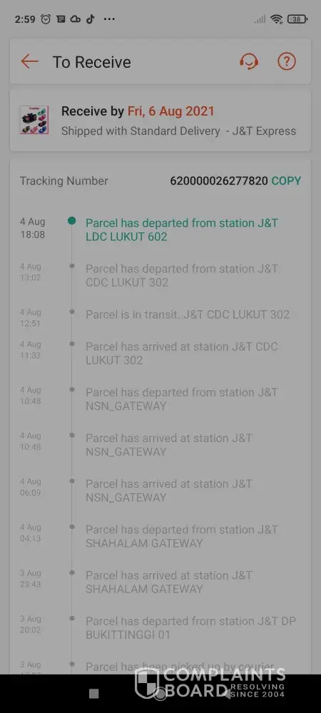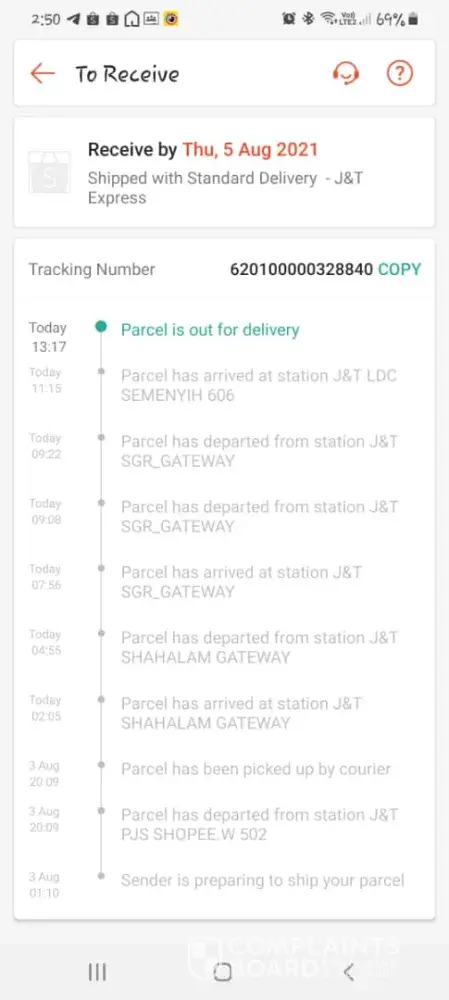 J&T Express Not out for delivery my parcel since 29 july 21 from klang jaya ldc branch