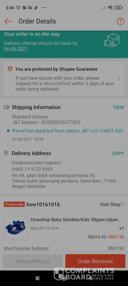 saya tak terima barang ni dari j&t. system shopee kata parvel dah terima. TRACKING NUMBUR J&T [protected]