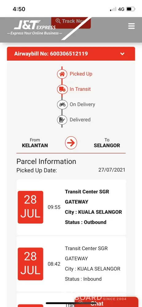 Parcel is in transit. J&T LDC KLANGJAYA 603