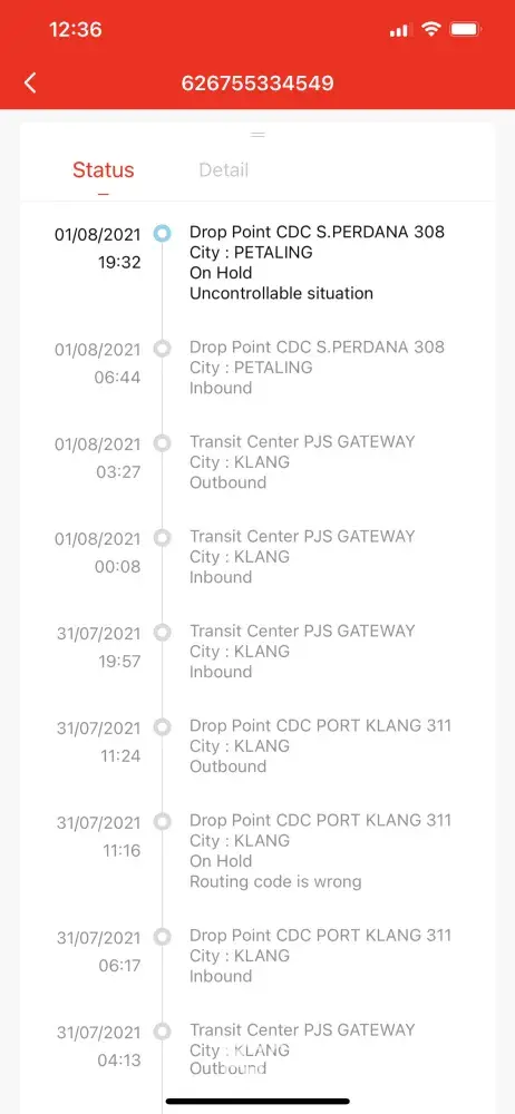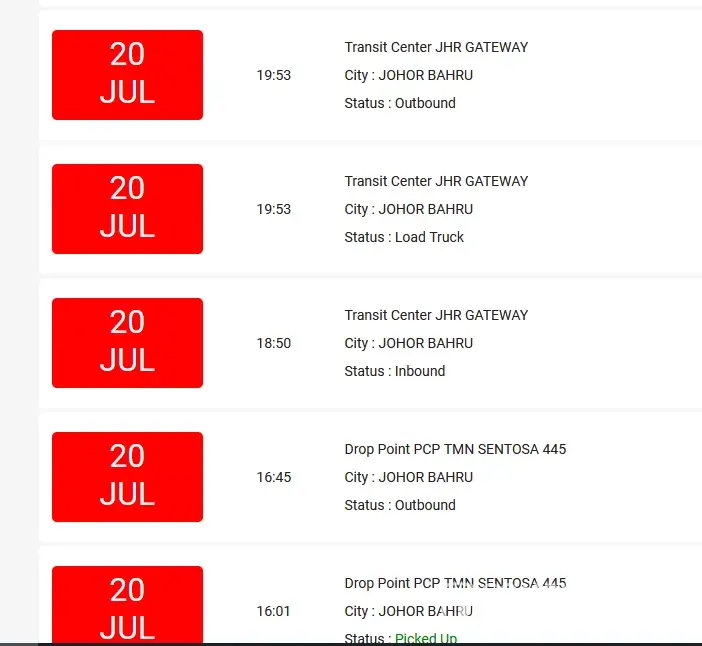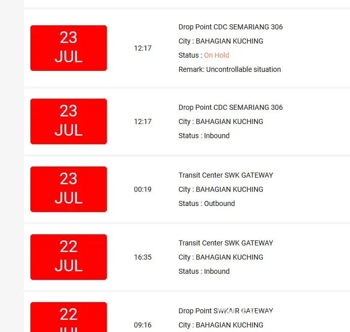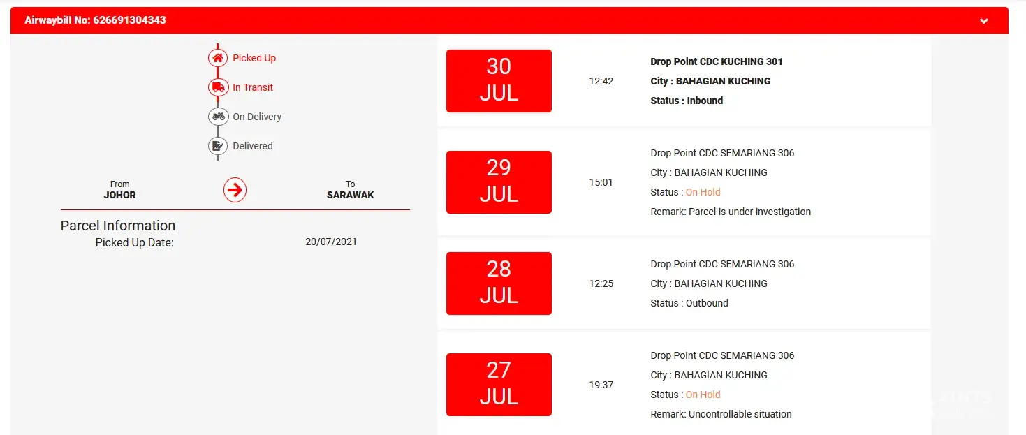 I had on two occassions at least where parcels were stuck at Cyberjaya Drop point for two days or more.