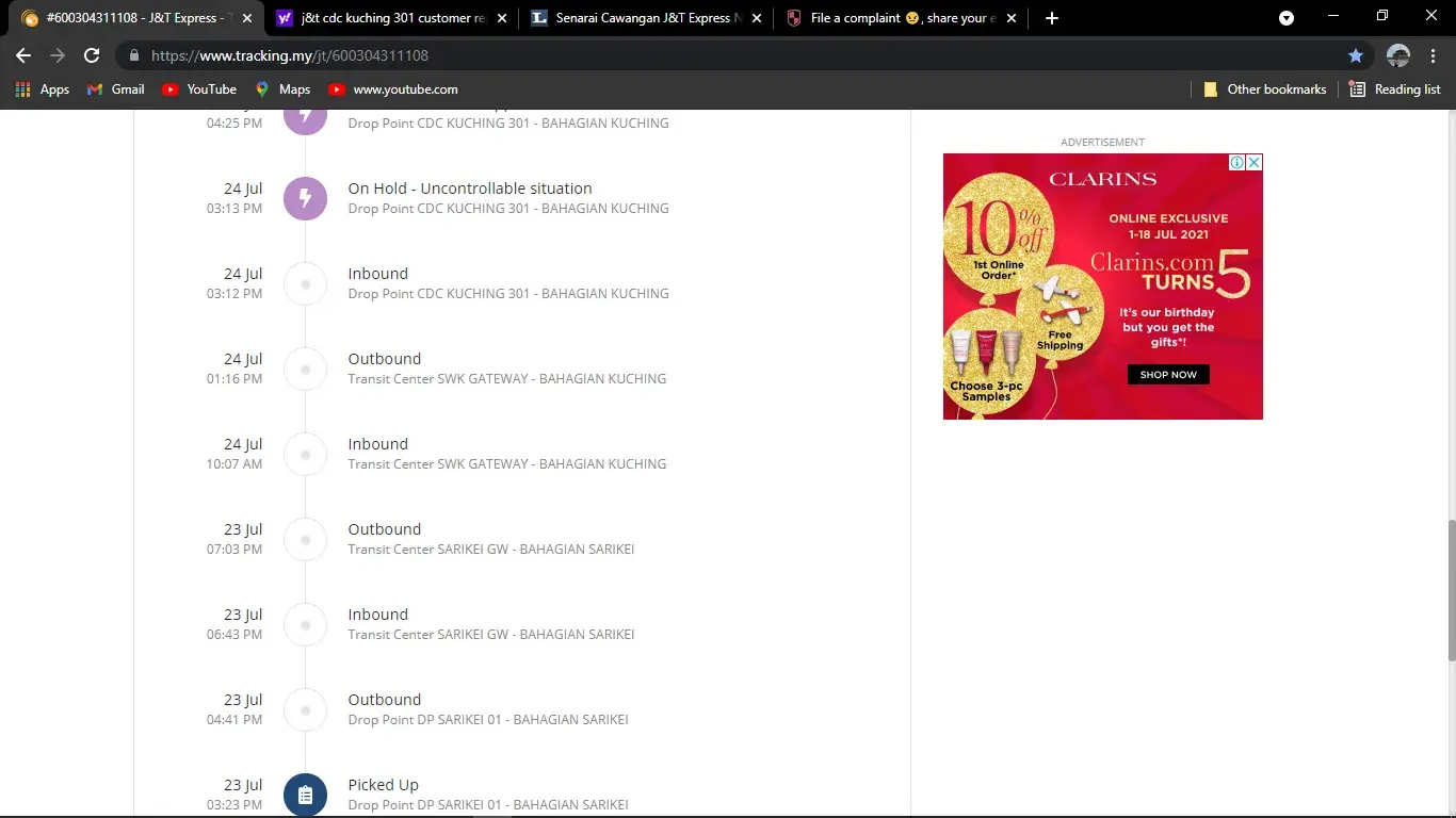 J&T Klang Jaya - Despatch collect the items at J&T Klang Jaya but keep the item with them for 4 days...What happen if the items is food? Too bad.