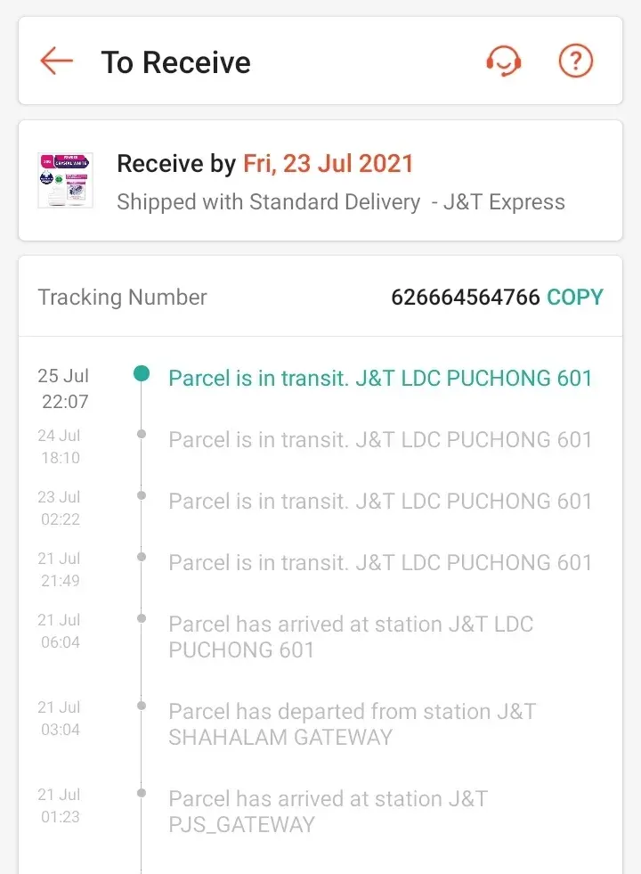 I need my item deliver as soon as possible especially during MCO. The shipping fee already paid. The item early arrived at J & T Samariang CDC 306 since 09 July 2021. Untill now 26.07.2021 still no progress for delivery.