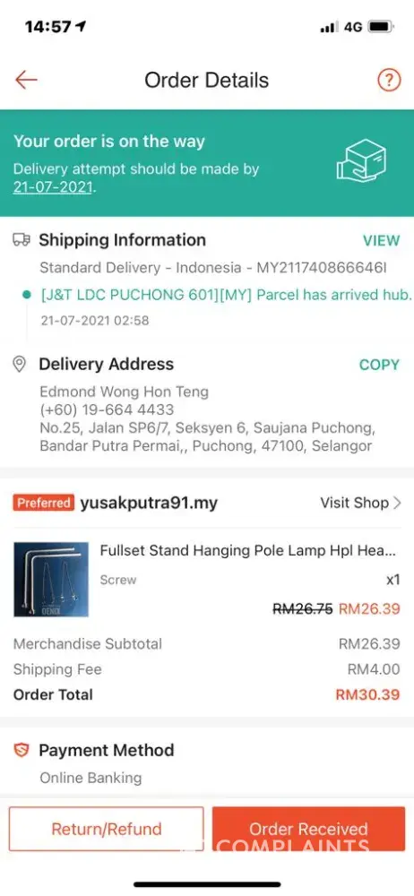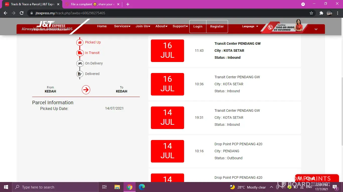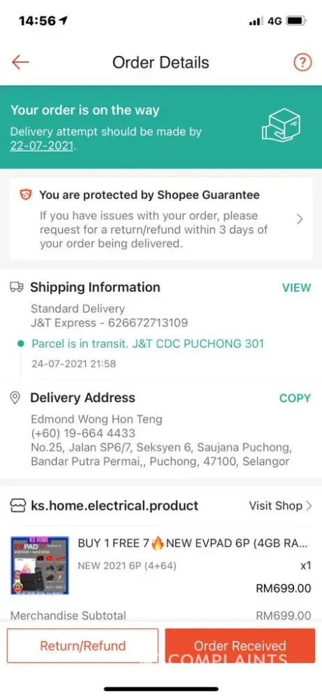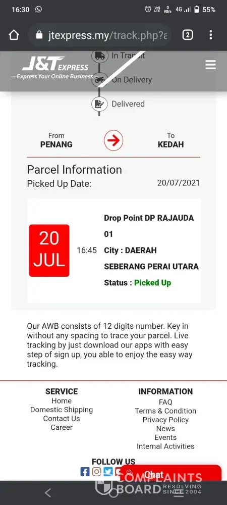 J&T Express My parcel late delivery till today 18 Jul