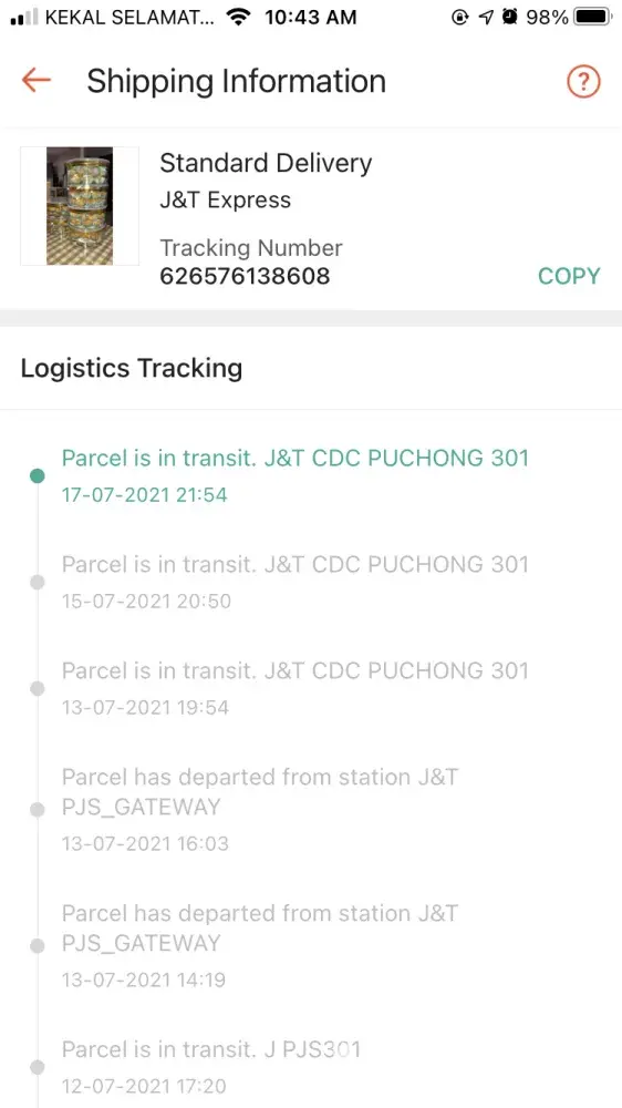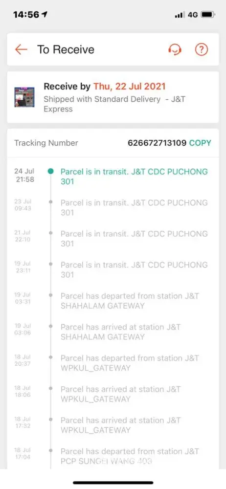 I checked the tracking number to trace and yes, the product is still in J&T Labuan from 22th June 2021 until now 16th July 2021.