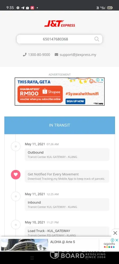 Parcel was sent out on 7 May and according to tracking, it arrived at J&T CDC AMPANG JAYA 302 on 8 Aug at time 9.11pm.